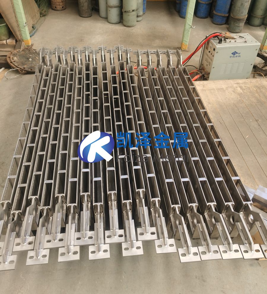 鈦籃由鈦框板和鈦網(wǎng)掛鉤三部分構(gòu)成。